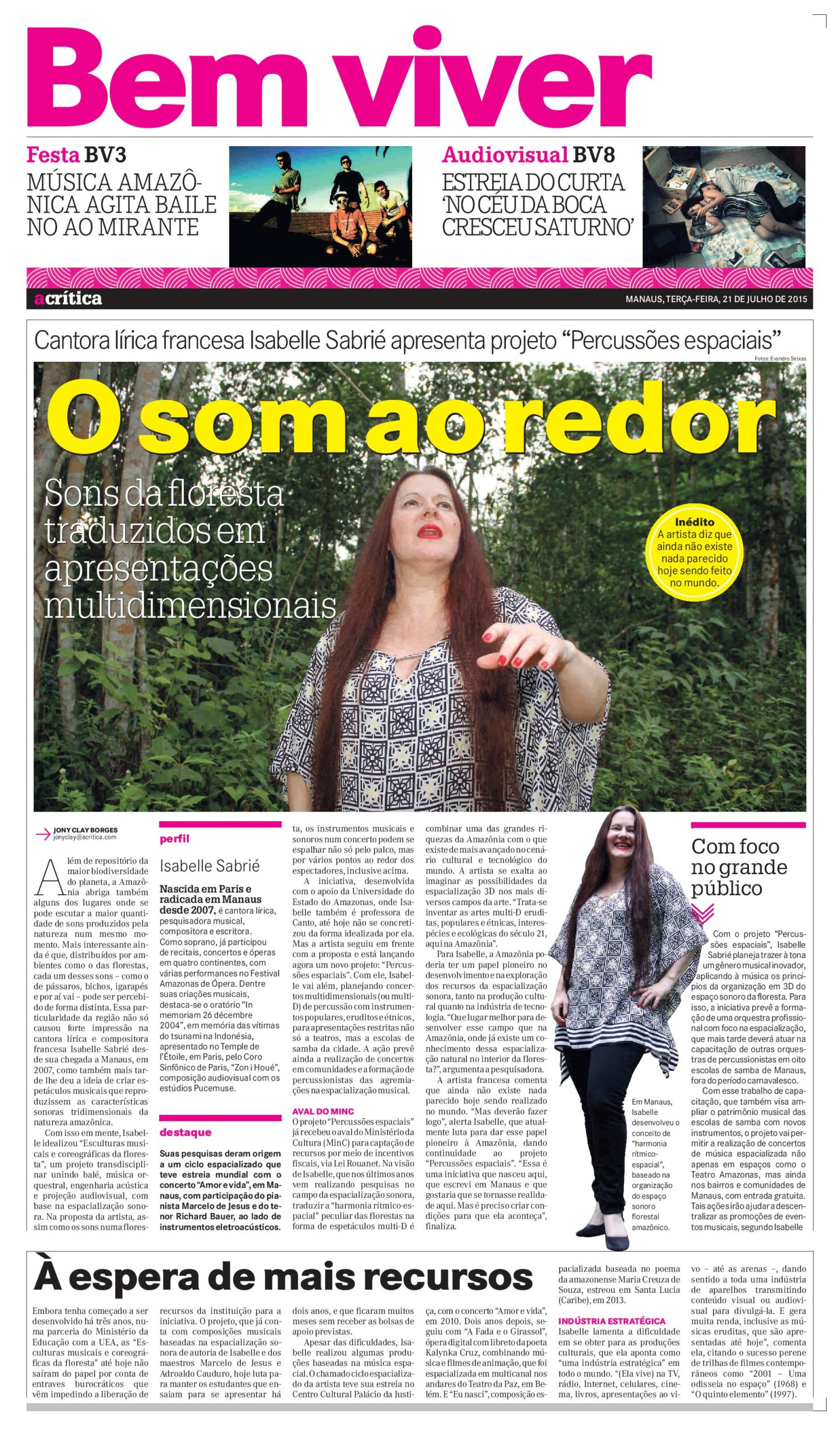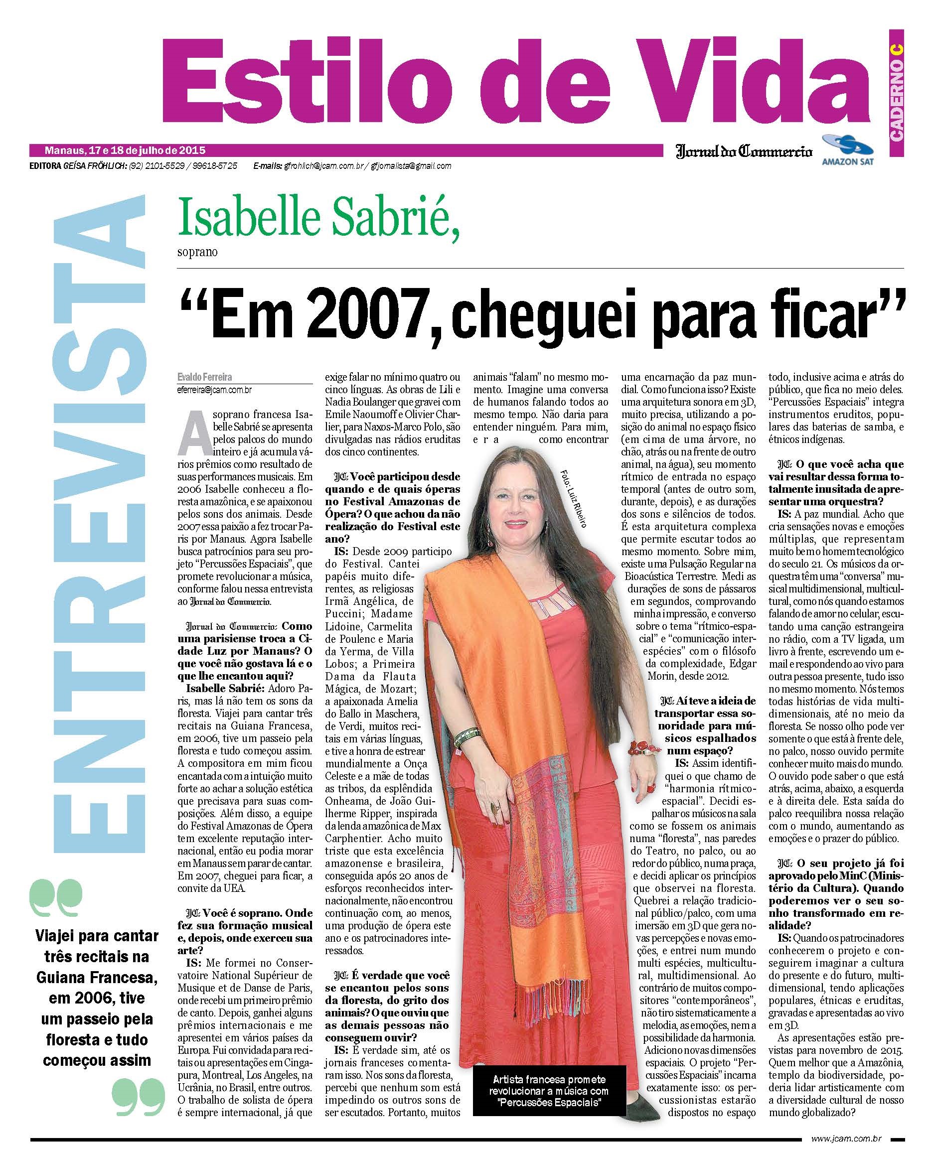 Isabelle Sabrié, Jornal do Comercio, July of 2015 🇧🇷